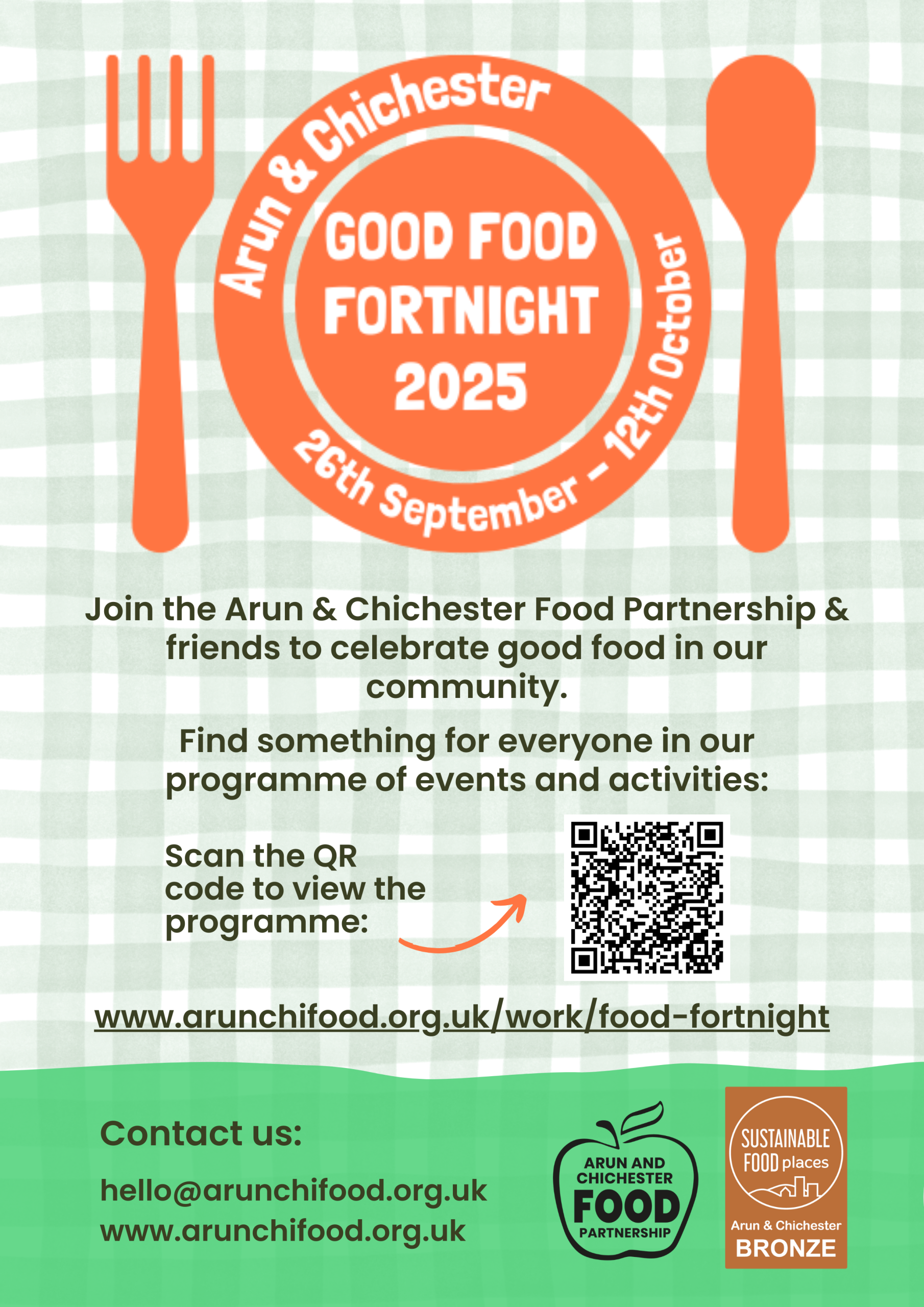 The Arun and Chichester Food Partnership brought back the Good Food Fortnight for its second year in 2025. It brought together a fortnight of food-related activities and events across the two districts with the aims to: